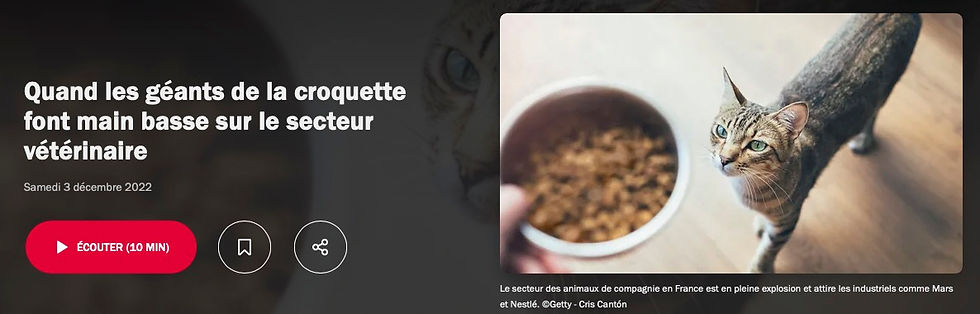 10 pages denses et très détaillées sur le "petfood" business. De quoi vous couper l'appétit, enfin plutôt de quoi reconsidérer très sérieusement la façon d'alimenter nos animaux de compagnie ! Et pas que l'alimentation... Hélas !